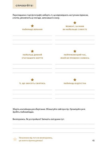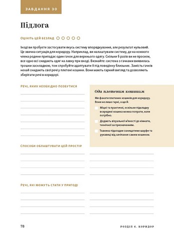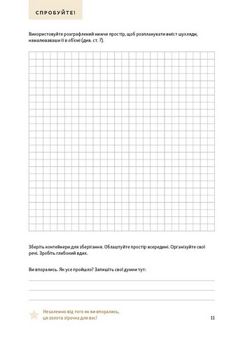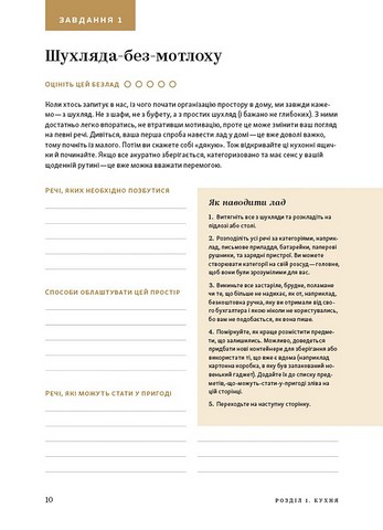 Робочий зошит структурований таким чином, що ви можете вирішувати одне завдання на тиждень або обійти весь дім за кілька місяців, і містить: