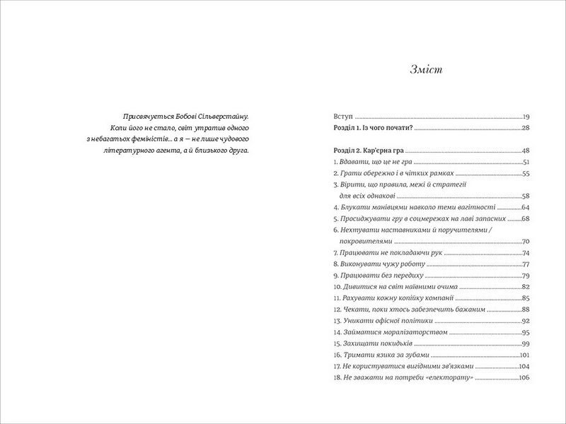 Авторка цієї книжки розглядає 133 помилки, яких жінки припускаються у роботі та пропонує способи, як їх уникати надалі. Поради Лоїс Френкел будуть корисними для того, щоб розвинути сміливість, впевненість, продуктивність, наполегливість – ті навички, які допоможуть отримати належний результат у професійній діяльності. Вона пояснює, як поводитися в тих чи інших робочих ситуаціях, як будувати особистий бренд, як спілкуватися, одягатися і реагувати. Але ці рекомендації актуальні не тільки для жінок, а й для чоловіків.