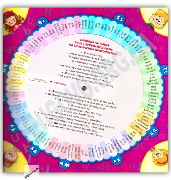 Інформація, структурована й зручно розміщена в книзі, допоможе дітлахам опанувати базовий матеріал, а рухомі круги-тренажери внесуть у навчання ігровий момент та допоможуть закріпити здобуті знання.