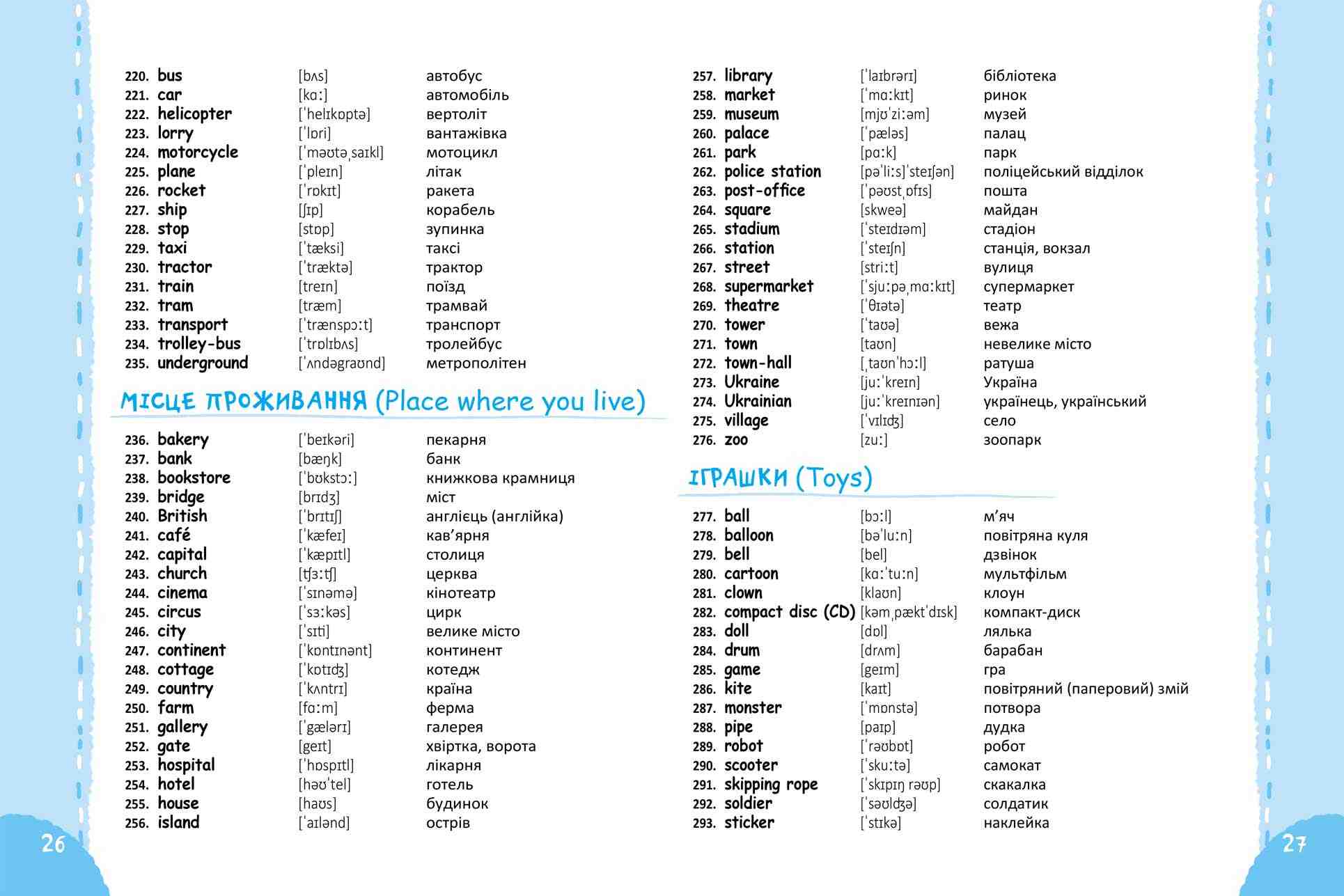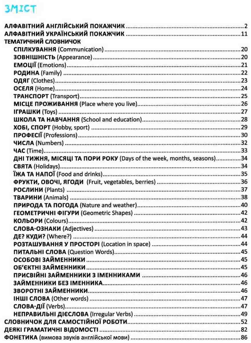 Подано також необхідні граматичні та транскрипційні відомості. Окремою частиною зошита є сторінки з графічною основою для самостійного ведення словничка дитиною.