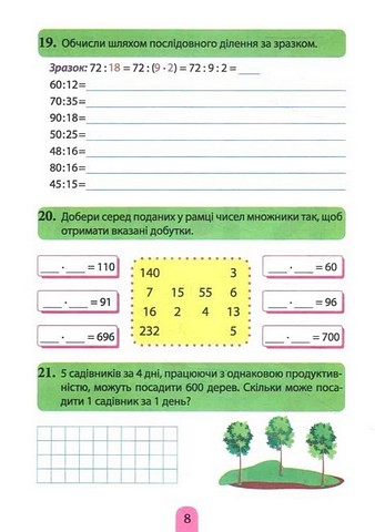 Цікаві завдання пропонованого тренувального зошита допоможуть дитині оволодіти навичкою позатабличного множення та ділення, використовувати прийоми раціональних обчислень.