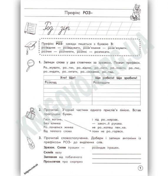 - детально відпрацьовує орфограми «Правопис префіксів»;