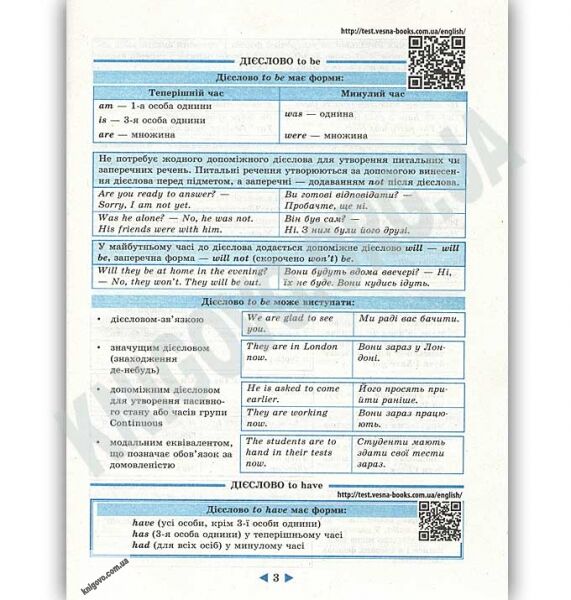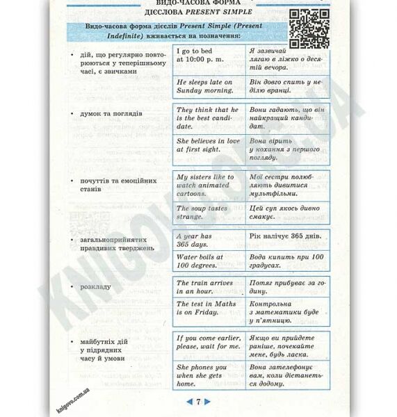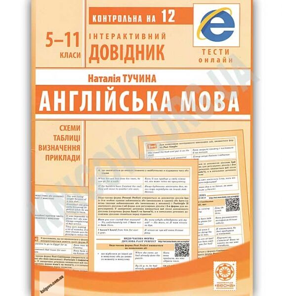 Інтерактивний довідник Англійська мова 5-11 класи + онлайн тести + Q код. Він допоможе учням систематизувати й по глибити знання з англійської мови. Усі відомості подано в доступній, стислій і наочній формі у вигляді зручних таблиць. Видання містить правила й визначення, що супроводжуються зрозумілими прикладами.