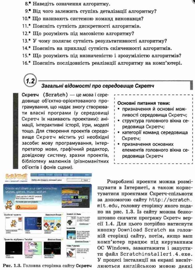 Навчальний посібник відповідає вимогам навчальної програми з інформатики та містить матеріали з алгоритмізації та програмування на базі навчального середовища програмування Scratch.