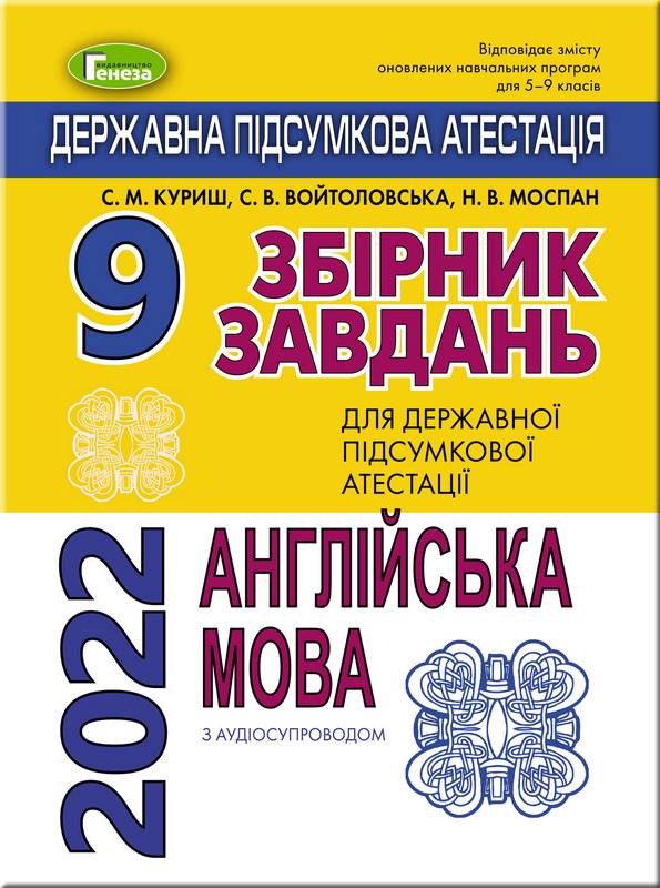 ДПА 9 клас 2022 Англійська мова Збірник завдань з аудіосупроводом Авт: Куриш С. Вид: Генеза