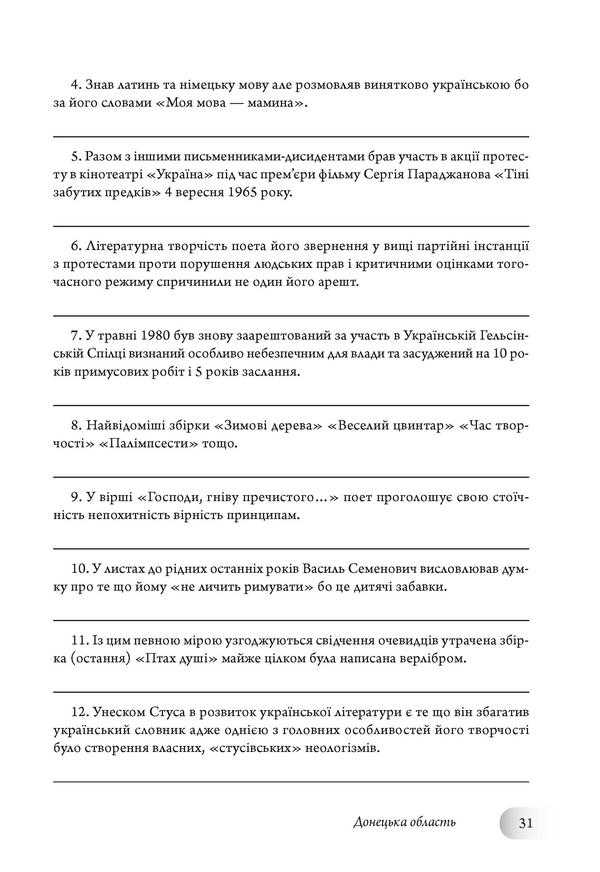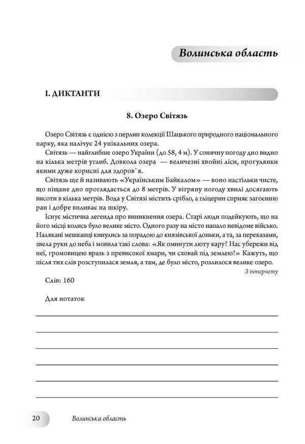 Збірник диктантів: посібник робочий зошит для підготовки до ДПА з української мови 9 клас 2021 Соняшник. Посібник складається з текстів диктантів, що розповідають про цікаві місця та рослини всіх регіонів України, завдань на заповнення пропусків у текстах про етнографічний одяг цих регіонів та тез про письменників, у які потрібно вставити потрібні знаки пунктуації та визначити тип речень.