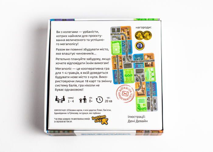 Стать успешными проектировщиками абсолютно нового огромного города вас приглашает кооперативная настольная игра Мегаполис (Мегаполіс, Sprawlopolis). В настольном мире игра Sprawlopolis появилась в 2018 году, став номинантом на звание Лучшей соло игры и Лучшей карточной игры конкурса Golden Geek. В рейтинге BoardgameGeek мини-стройка с огромным потенциалом занимает 125 место среди лучших семейных игр всего мира, что по её размерам очень даже и неплохо.