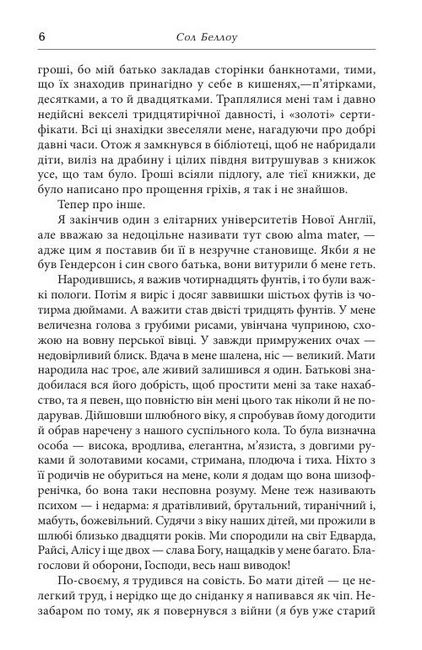 Сол Беллоу [Соломон Білоус] (1915–2005) – видатний американський письменник, народився в провінції Квебек у єврейській родині. Після закінчення школи вступив до Чиказького університету. Увійшовши в літературу на початку 40-х років, опублікував кільканадцять романів і повістей, збірки оповідань, низку п’єс. Американська критика вважає Беллоу одним з найталановитіших письменників свого покоління. 1976 року С. Беллоу було присуджено Нобелівську премію з літератури "за твори, в яких співчуття до людей поєднане з тонким аналізом сучасної культури". Роман "Гендерсон, повелитель дощу" – один з основних його творів, написаний у своєрідному філософсько-притчевому ключі, де дуже виразно звучить тема відчуження людини у сучасному світі.