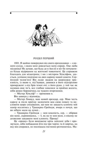 У Грозовому Перевалі, маєтку, володар якого колись привів у дім хлопчика-сироту та виховував його разом зі своїми дітьми, розгортається найпрекрасніша і водночас найжорстокіша історія кохання сироти-батрака і дочки хазяїв. Нещадний двобій пристрастей спонукають їх до жахливих вчинків. Незвичайний сюжет, емоційна напруга, справжня любов — ось що подобається читачам у цій книзі.
