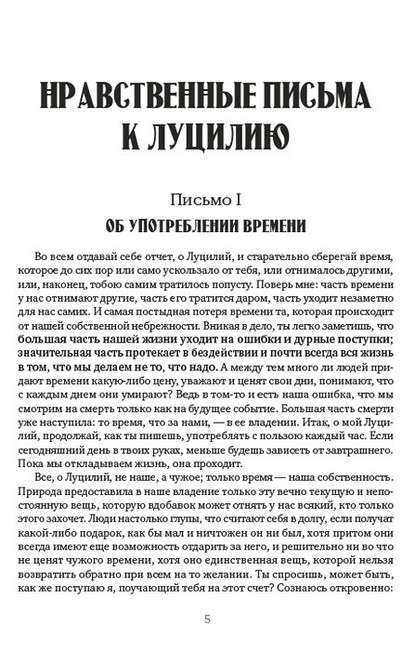 НРАВСТВЕННЫЕ ПИСЬМА К ЛУЦИЛИЮ, адресованные младшему современнику Сенеки, прокуратору Сицилии, — итог философии и жизненного опыта Сенеки. Написанные простым и мудрым языком, ПИСЬМА и сегодня могут служить руководством по морально правильной жизни.