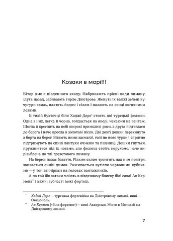 \nЧитачі мандрують залами дипломатичних переговорів і козацькими поселеннями на Січі, угіддями шляхтича Потоцького й залами палацу турецького султана, поринаючи в історичний колорит епохи XVII століття.