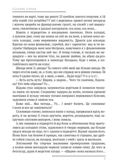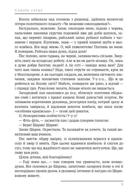 "Собаче серце" — один з найвідоміших і улюблених читачами творів Михайла Булгакова. Повість про незвичайний експеримент вченого, який задумав операцію з пересадки людського гіпофізу собаці з метою створення нової особистості в оновленому суспільстві.