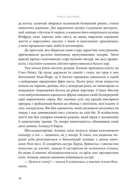 Завдяки гнучкому стилю, помережаному літературними відсиланнями (на Ґарсія Маркеса, Остера, Орвелла чи Стівена Кінґа) й образами, які шокують, Хав’єр Кастільйо створює сповнений романтики трилер, що розгортається у трьох різних часових проміжках, досліджує межі людського єства й розриває усталені норми жанру «саспенс». Кохання, ненависть, доля, дивні практики, інтриги та стрімкий розвиток подій сплелися на сторінках першого роману Хав’єра Кастільйо, який спричинив фурор ще до паперового видання.