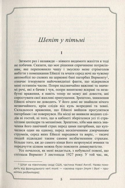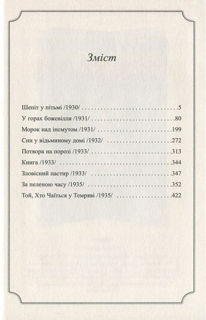 Третій том повного зібрання прозових творів видатного майстра літератури «загадкового та потойбічного» Г. Ф. Лавкрафта присвячений останньому періоду життя і творчості письменника (1930 по 1935 рр.), коли з-під його пера з’явилися наймасштабніші твори, такі як «Шепіт у темряві», «У горах божевілля», «Морок над Інсмутом», «Сни у відьминому домі» та «За пеленою часу», що довершили формування циклу Міфів Ктулху і вповні оприявили жаску і химерну космогонію Лавкрафта.