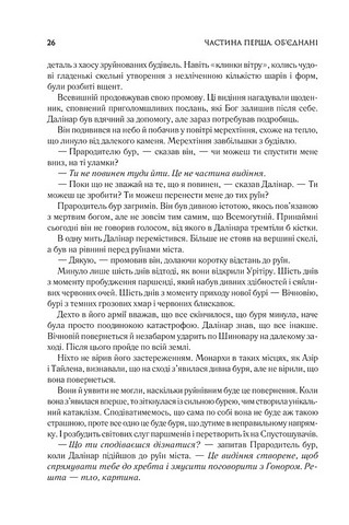У місті-вежі Урітіру, високо над бурями, Шаллан Давар досліджує чудеса стародавньої твердині лицарів Променистого ордену. Та схоже, що навіть їхнє відновлення вже не зупинить кінця цивілізації…