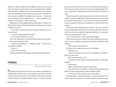 \nУ романі «Рекурсія» Блейк Крауч не лише створив альтернативну реальність, а й змусив ще раз замислитися про те, що існування людства залежить від кожного з нас…