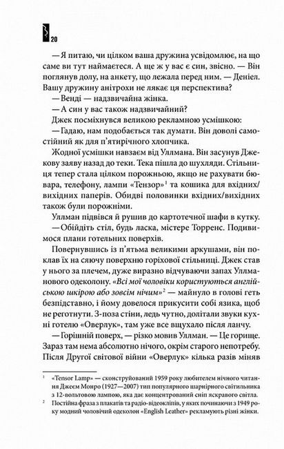 Коли Торранси найнялися доглядати взимку за розкішним готелем, вони й гадки не мали, який невимовний жах чекає на них... Одного разу там скоїлася страшна трагедія: колишній доглядач зарубав сокирою власну родину. Саме тут п’ятирічний Денні дізнався, що він може бачити справжніх мешканців будинку. І це — привиди. Хлопчику, наділеному даром передбачення, відкривається страшна суть речей. Він уже знає, звідки його родині загрожує смерть...