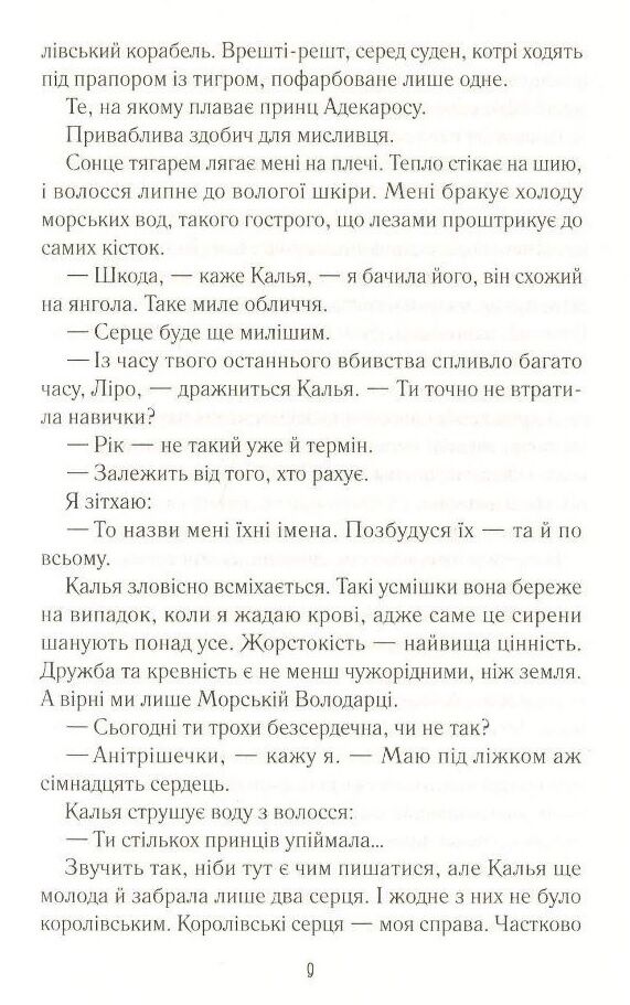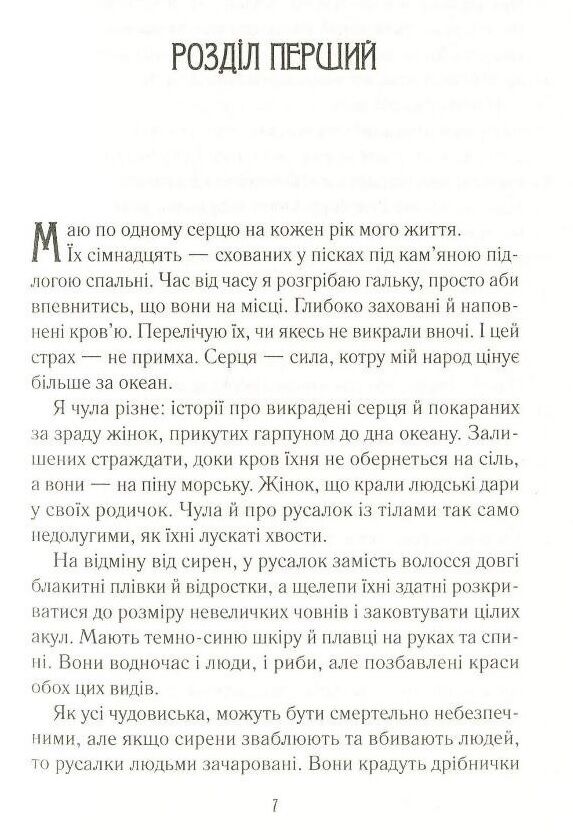 Принцеса Ліра - найнебезпечніша вбивця посеред морської безодні. Серця сімнадцяти юнаків - трофеї, завдяки яким її шанують в утробі моря. Коли вона раптом убиває одну із сирен, її мати, королева морів, перетворює Ліру на істоту, яку зневажає найбільше - на людину. Щоб знову стати собою, Ліра повинна здобути для матері серце принца Еліана, мисливця за сиренами. Принц вважає океан домівкою, попри те що він спадкоємець одного з найвпливовіших королівст у світі. Для нього полювання на сирен - це обов`язок. Але, рятуючи молоду жінку в морі, Еліон і гадки не мав, хто вона насправді. Ліра обіцяє допомогти йому остаточно винищити сирен, та чи може він ій довіряти? Хто з них стане переможцем у цій битві?