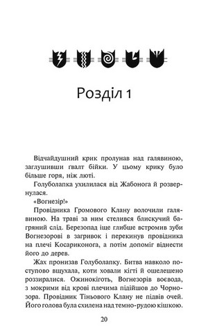 \nОформлення — Олег Панченко. При перекладі тексту українською для опису загального устрою котячих кланів та громадянства їхніх членів була використана термінологія Національної скаутської організації України «Пласт».