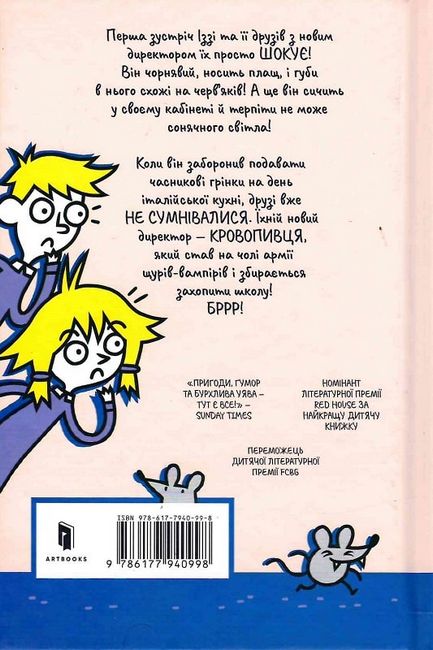 Бурхлива дитяча уява, що перевертає життя з ніг на голову, шкільні пригоди та міцна дружба — усе найцікавіше в одному виданні! Відірватися від читання книжки «Мій директор — щур-вампір» просто неможливо!
