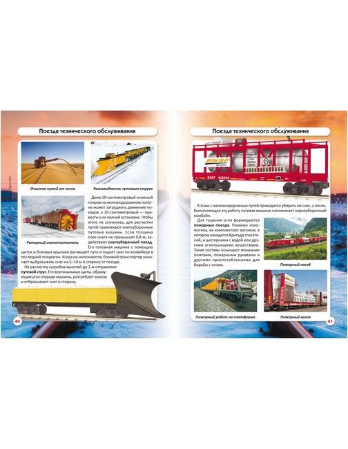 В ней рассказывается о поездах, занимающихся перевозкой пассажиров и грузов, а также о путевых машинах, предназначенных для укладки и обслуживания железнодорожного полотна. Описание их видов и принципа действия иллюстрируется яркими фотографиями. Они сделают знакомство с нашей книгой еще более увлекательным и захватывающим.