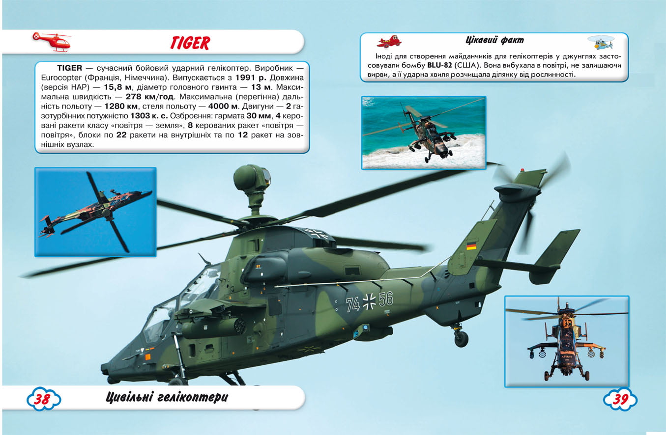Коли на початку XX ст. брати Райт побудували перший аероплан, здійснилася давня мрія людини підкорити небо. У наш час «залізні птахи» стали надійними помічниками людей. Ця енциклопедія містить інформацію про сучасні цивільні й військові літаки та гелікоптери. Ви зможете ознайомитися з їхніми льотно-технічними характеристиками й скласти уявлення про те, який вигляд вони мають. Яскраве кольорове видання може стати чудовим подарунком або зайняти гідне місце у вашій бібліотеці.