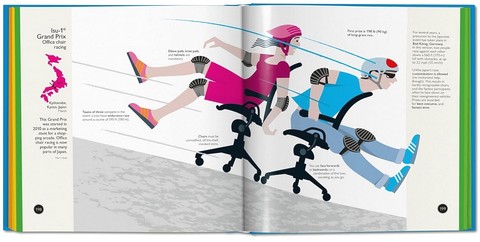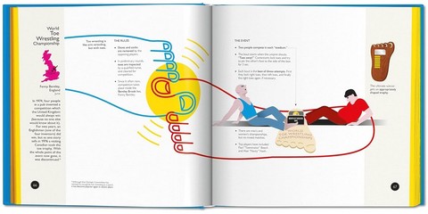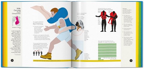 Whether it’s flinging frozen rats or parading in holly evergreens, racing snails or carrying wives, human beings have long displayed their creativity in wild, odd, and sometimes just wonderful rituals and competitions. To show what lengths we’ll go to uphold our eccentric customs, British American graphic designer Nigel Holmes channels his belief in the power of hilarity to bring together a bewilderingly funny tour around the globe in search of incredible events, all dryly explained with brilliant infographics.