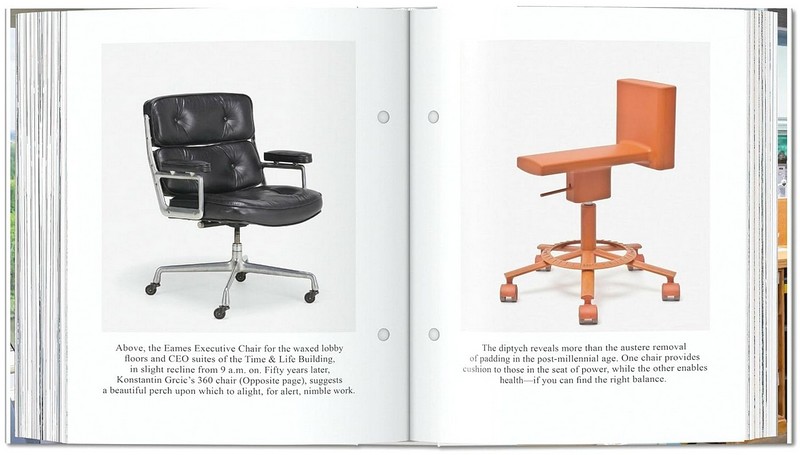 У дванадцяти есеях цієї книги досліджуються просторові типології та глобальні явища, які визначали офіс протягом останніх півстоліття. Серед тем - повернення робочого клубу, розквіт корпоративного фестивалю, шлях харизматичного гуру, руйнування годинника часу та дизайн ігрових майданчиків для роботи. Ми мандруємо радикальними, грайливими просторами Френка О. Гері для цифрових кочівників у світі реклами, хитаємося під вагою стосів перфокарт, відчуваємо прилягання свого тіла до крісла Aeron Chair, відповідаємо на телефонні дзвінки в ліжку Г'ю Хефнера та гортаємо стрічку Ліл Мікели. Фотографічні есеї Івана Баана надають візуальний звіт після заселення низки канонічних офісних проектів, таких як кампус IBM Марселя Бройера у Флориді та міський сад Фонду Форда на Мангеттені. Чотири проміжні каталоги пропонують колекції експериментальних робочих місць, рекламу компонентів офісних будівель, цифрових офісних компонентів та візуалізації спекулятивних робочих місць; кожен каталог поєднує реальність офісу та те, як ми уявляємо собі його альтернативи.