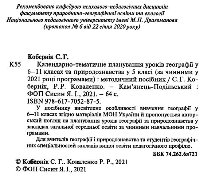 Календарне планування Географія 6-11 класи Природознавство 5 клас 2019-2021 рр. Кобернік С. Абетка. Календарно-тематичне планування уроків географії у 6-11 класах та природознавства у 5 класі