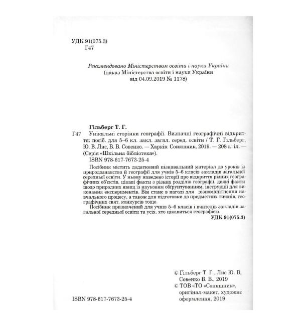 Унікальні сторінки географії Визначні географічіні відкриття 5–6 класи Авт: Гільберг Т. Лис Ю. Совенко В. Вид-во: Соняшник 41433