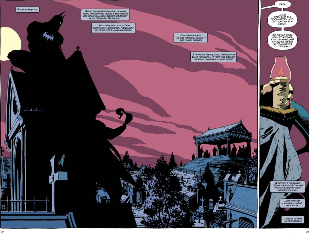 Загадочный убийца по прозвищу Праздник отмечает красные даты календаря кровью очередной жертвы. Работая бок о бок с комиссаром полиции Джеймсом Гордоном и окружным прокурором Харви Дентом, Бэтмен пытается предотвратить очередное преступление, но это все равно что пытаться обогнать время. Закрученный сюжет заставляет читателя постоянно гадать, кто же этот таинственный злодей, подозрения падают и на врагов, и на друзей Бэтмена. Эта история замкнется в своем начале, изменив всех участников и преобразив до неузнаваемости лицо и душу Харви Дента…