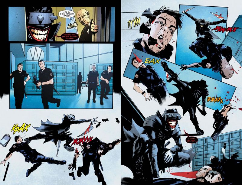 «Бэтмен, Который Смеется» – мини-серия Скотта Снайдера и Джока, которая подхватывает сюжетные линии с грандиозного кроссовера «Тёмные ночи: Металл» и продолжает утверждение Смеющегося Бэтмена как одного из самых опасных злодеев во вселенной DC. В книгу вошли все семь выпусков одноименной серии и ваншот «Мрачный Рыцарь».