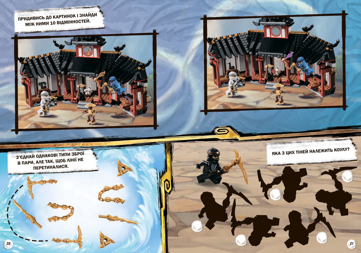 Для цього доведеться виявити кмітливість і вправність. Щоб допомогти відважним воїнам у боротьбі з поганцями, виконай усі завдання цієї книжки та стань справжнім ніндзя.