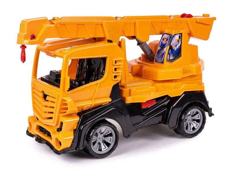 Машинка іграшкова FS1 автокран має велику кількість рухомих і функціональних елементів. Встановлена на кузові стріла крана повертається навколо своєї осі, піднімається вище і нижче, висувається вперед, щоб дотягнутися гачком до віддалених вантажів. У стильної, сучасної кабіні машинки можна побачити деталізований салон - сидіння і панель управління. Всі деталі іграшки виготовлені з міцного і безпечного пластика.