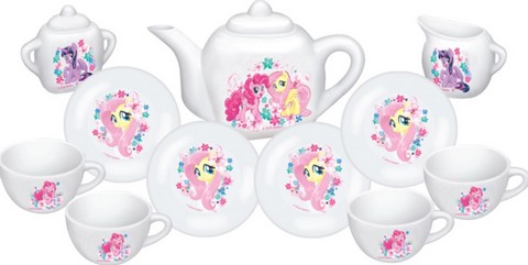 Побалуйте свою юну господиню чарівним чайним сервізом My Little Pony ! Набір посуду з милими поні з мультфільму допоможе їй організувати справжнє чаювання, під час якого малятко розвиватиме уяву, навички спілкування, освоюватиме правила етикету й сервірування стола. І, звісно, веселі чаювання в компанії подруг і улюблених іграшок подарують дитині справжнє задоволення!
