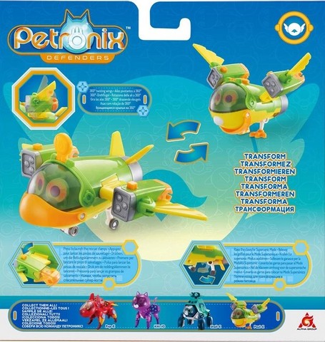 Ласкаво просимо у світ Petronix Defenders! Коли дикі тварини з будь-якого куточку світу опиняються в небезпеці, команда юних супергероїв відправляється їм на допомогу! Їхні рюкзаки перетворюються на маленьких тварин за допомогою дивовижних технологій, і разом вони відправляються у все більш сміливі місії, щоб врятувати тварин! Фігурка-трансформер має дві форми трансформації. Легко трансформується у літак, для активації потрібно зробити одну дію. Є рухливі механічні елементи.