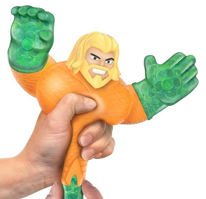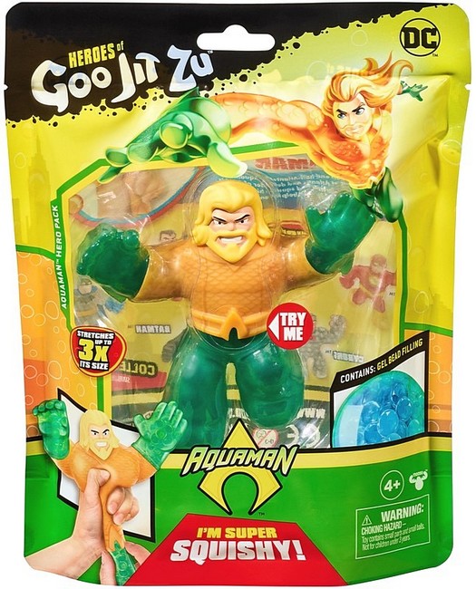 Аквамен об’єднав зусилля з Heroes of GooJitZu, щоб стати Super Squishy Hero! Він використовує своє наповнене слизом тіло, щоб захищати величезні океани Землі та підводний світ! Цей герой GooJitZu DC може розтягувати, крутити та хлюпати своєю унікальною слизовою начинкою та рухатися так, як ніколи раніше! Завдяки його м’якій начинці ви можете стиснути його тіло та відкрити його гелеву начинку, що рухається всередині нього!