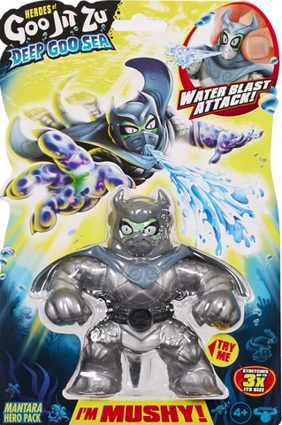 Герої Goo Jit Zu занурились у глибини Deep Goo Sea! Всі бойові прийоми персонажів Goo Jit Zu виведені на новий рівень завдяки новим та унікальним функціям атаки: водяного вибуху, удару головою, чемп-атаки та ін. Кожна з фігурок має різне наповнення, деякі з них вміщують морських істот, які плавають всередині, що робить їх тіла, руки та ноги м'якими, хрусткими та еластичними! Діти можуть розтягнути ці фігурки у три рази, а потім спостерігати, як вони повертається до своєї початкової форми!