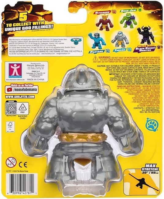 Представляємо новий, епічний набір героїв Heroes of Goo Jit Zu Stretch Strikers! Траш повертається та готовий протистояти грізним лиходіям Goo Jit Zu — Rock Jaw & Orbitox! Він має здатність розтягуватися до 3-х разів, та не забудьте застосувати EPIC Stretch Attack! Збери всіх персонажів Goo Jit Zu Stretch Strikers з унікальним наповненням!