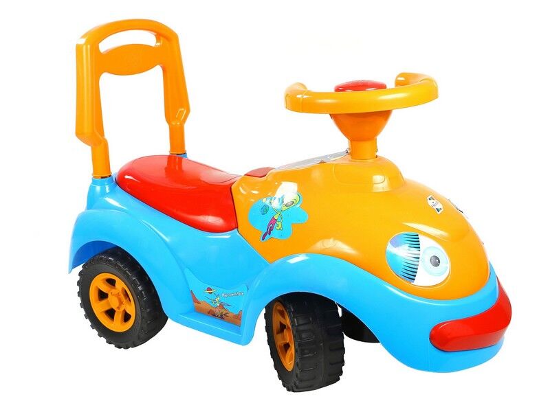 Машинка виготовлена з міцного пластику, що витримує значні навантаження. При ударі він не б’ється, не ламається, завжди знаходиться в акуратному стані. Фарба, використана при виготовленні каталки, не містить в своєму складі шкідливих компонентів, здатних викликати алергію або подразнення шкіри. Кермо та спинка сидіння можуть зніматися.
