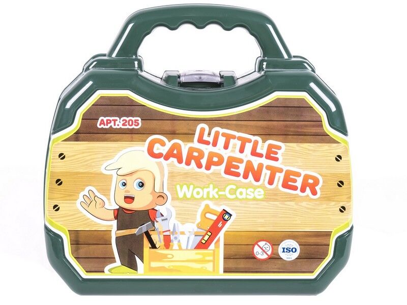 Набір столяра в валізі дозволяє малюку зберігати весь інструмент в одному місці. У наборі є все необхідне для роботи з деревом – рубанок, ножівка, молоток, кліщі, іграшкова електродриль і навіть стамеска. У будь-яку хвилину малюк буде готовий допомогти татові прибити цвях, відпиляти дощечку або попрацювати рубанком. Завдяки іграшковим інструментам, дитина з перших років привчається до самостійності, працьовитості, робить спроби майструвати щось своїми руками.