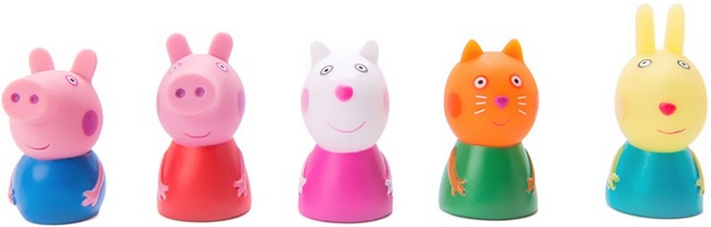 В наборе для пальчикового театра "Свинка Пеппа" 5 фигурок высотой 5 см: Свинка Пеппа, Малыш Джордж, Котенок Кенди, Овечка Сьюзи, Кролик Ребекка (6 см).