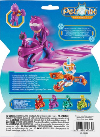 Ласкаво просимо у світ Petronix Defenders! Коли дикі тварини з будь-якого куточку світу опиняються в небезпеці, команда юних супергероїв відправляється їм на допомогу! Їхні рюкзаки перетворюються на маленьких тварин за допомогою дивовижних технологій, і разом вони відправляються у все більш сміливі місії, щоб врятувати тварин! Фігурка з рюкзаком розміром: 7.5х2.5 см. Фігурка рухлива: голова, руки, стегна, коліна. Рюкзак можна зняти. Окуляри не знімаються. У кожного героя мотоцикл та фігурка-робот.