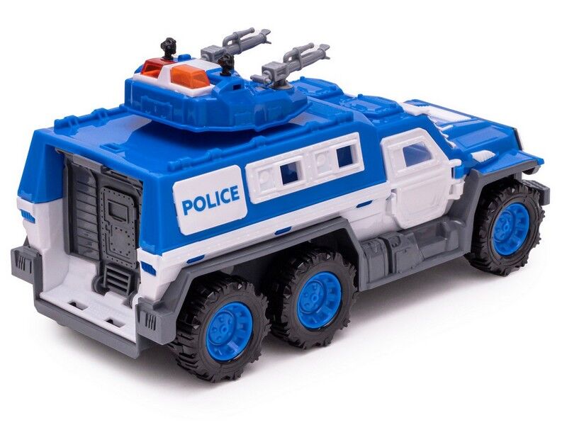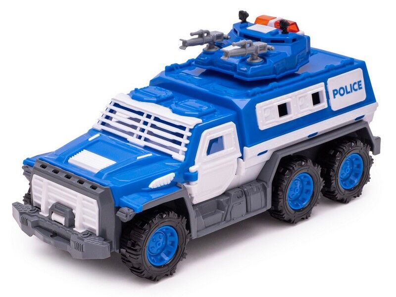 Яскрава приваблива модель поліцейськох броньованої машини безумовно викличе інтерес у малюків. Зроблена з якісного пластику, іграшка повністю безпечна для здоров'я дитини.