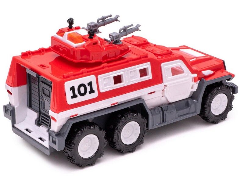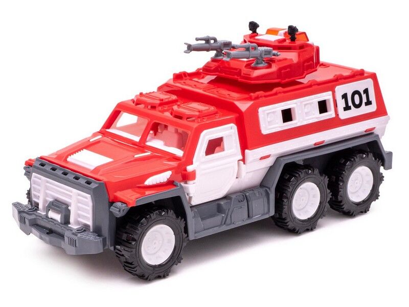 Яскрава приваблива модель пожежної броньованої машини безумовно викличе інтерес у малюків. Зроблена з якісного пластику, іграшка повністю безпечна для здоров'я дитини.