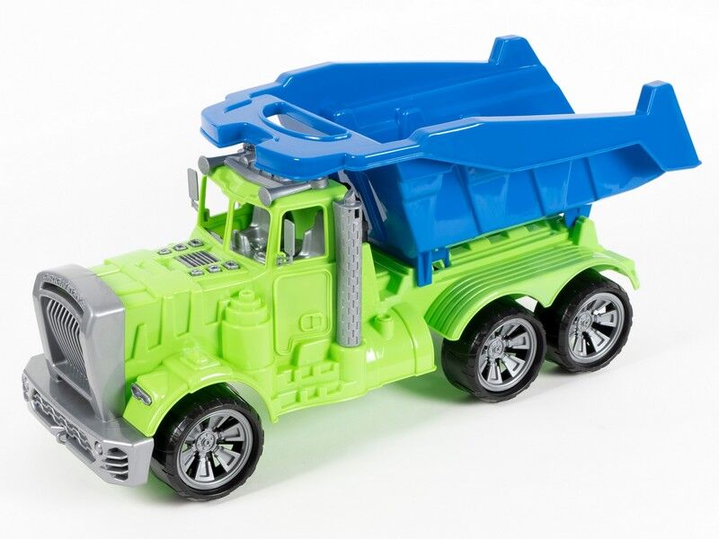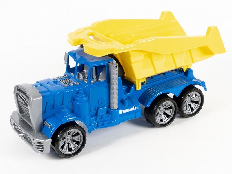 Машинка має відкидний кузов, можна завантажити багато піску і по будь-якому бездоріжжю доставити його до об'єкту. Стильна кабіна з деталізованим салоном, сидіннями і прібороною панеллю збільшує привабливість для дітей цієї якісної та цікавої іграшки.