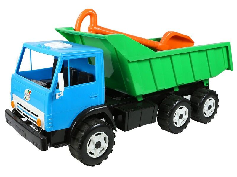 Самоскид складається з шасі, на якому встановлена кабіна. Позаду її - повітряний фільтр та кузов. Кузов може відкидатися та утримуватись у такому стані. Додатково іграшка комплектується лопаткою.