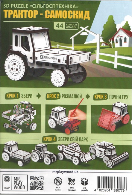 Трактор - Самоскид. Механічна дерев'яна 3D-модель