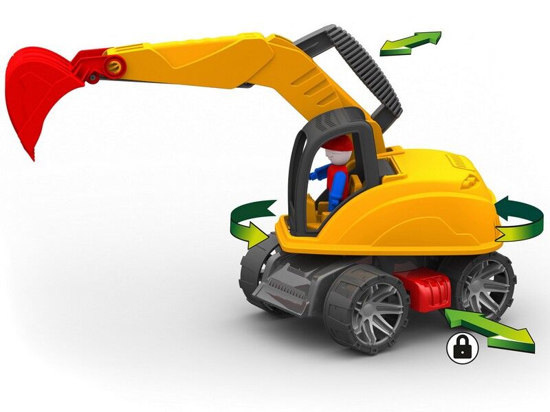 Грати машинкою можна в квартирі, у дворі будинку або в пісочниці, брати з собою в поїздку на дачу або на відпочинок. Модель багато місця не займає, і легко поміщається в дорожню сумку. Екскаватор виготовлений з міцного, екологічно чистого пластика. При грі з моделлю, алергії або подразнення шкіри не виникає. До комплекту входить також фігурка оператора екскаватора.