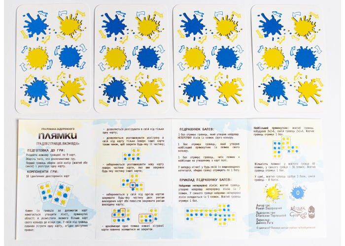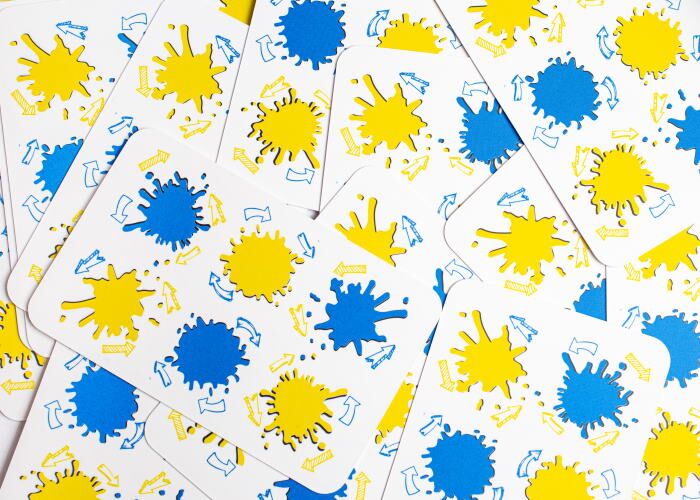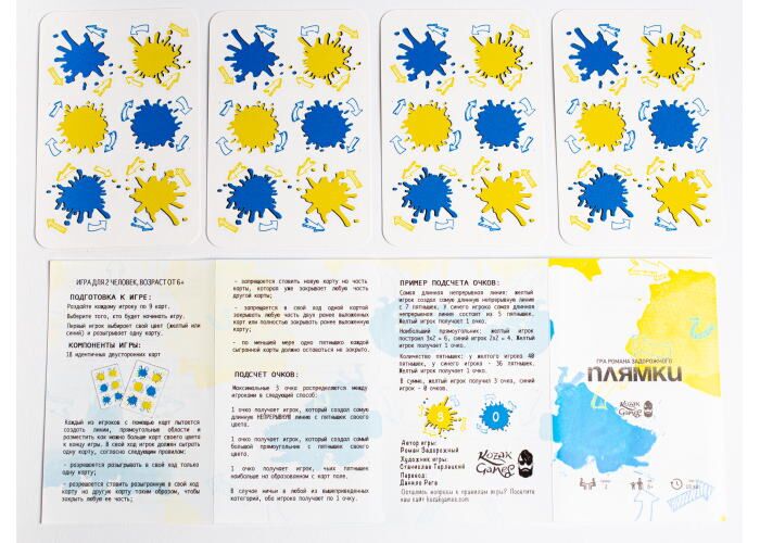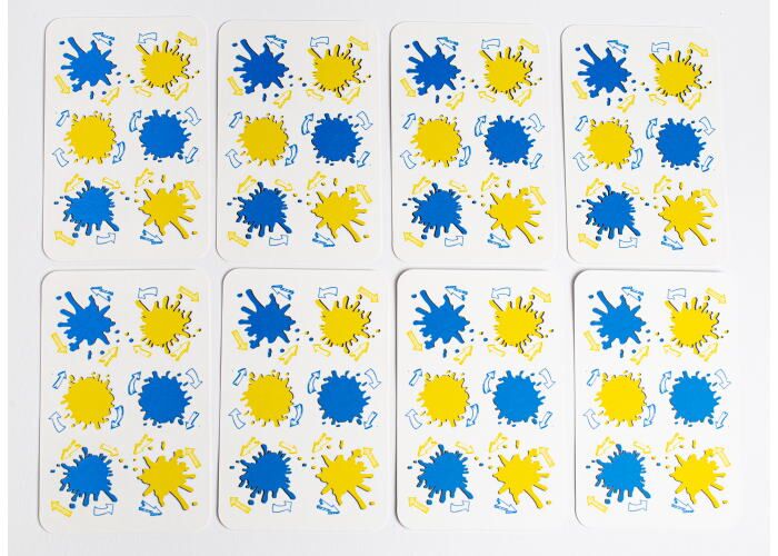 Игроки по очереди должны разыгрывать по одной карте, чтобы в итоге из пятнышек своего цвета создать самую длинную линию, самую большую прямоугольную область и собрать как можно больше клякс.